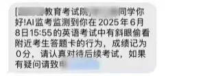 近日,部分高考考生收到所谓“XX教育考试院”的短信,称在考试中被AI监考发现其有作弊行为,成绩记为0分。已有考生收到,民警郑重提醒各位考生、家长注意:教育主管部门和招考机构绝不会向考生发送此类信息。请各位考生及家长注意妥善保管好个人信息,不要轻易回复此类可疑短信,更不要点击短信中的链接或拨打相关电话,谨防个人信息泄露导致财产损失!